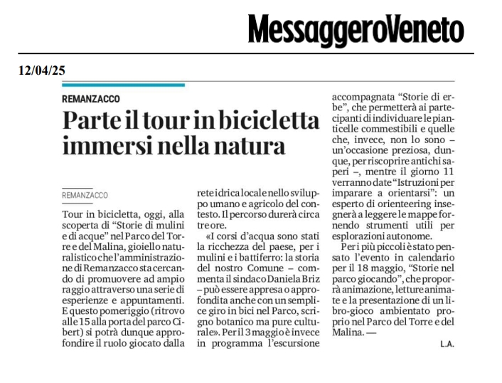 Ecco due articoli usciti per l’iniziativa in bicicletta. “Giro delle acque e dei mulini”